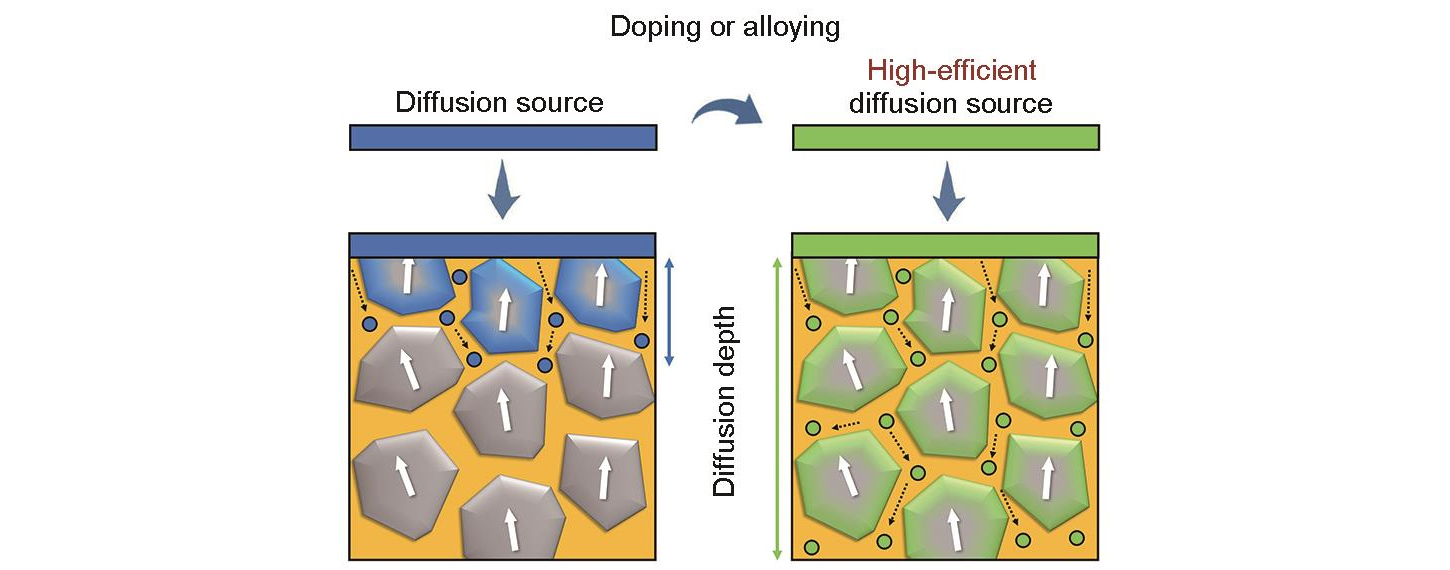 Bruk av denne teknikken, som distribuerer tunge sjeldne jordartselementer med lavt innhold langs korngrensene, forbedrer korngrensedefekter og oppnår en betydelig økning i Hcj.